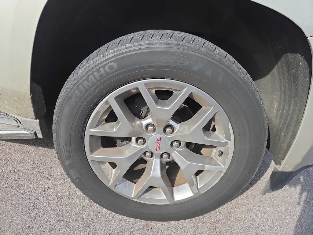 OPEN ROAD PACKAGE, (CF5) power sunroof, (U42) rear seat entertainment system and on SLT (IO6) Audio system with navigation, ENTERTAINMENT SYSTEM, REAR SEAT BLU-RAY/DVD. with remote control, overhead display, four 2-channel wireless infrared headphones and auxiliary audio/video input jacks/SD and USB slots, includes second screen for third row passengers, WHEELS, 20 X 9 (50.8 CM X 22.9 CM) POLISHED ALUMINUM, SEATS, SECOND ROW BUCKET, POWER, AUDIO SYSTEM, 8 DIAGONAL COLOR TOUCH SCREEN NAVIGATION WITH INTELLILINK includes New text message alerts and Siri Eyes Free functionality through voice command, AM/FM/SiriusXM/HD with USB ports, auxiliary jack, SD card slot, Bluetooth® streaming audio for music and most phones, hands-free smartphone integration, Pandora Internet radio and voice-activated technology for radio and phone, and an articulating screen with hidden storage. Includes 5 USB ports, 1 auxiliary jack and 1 SD card reader, ENGINE, 5.3L ECOTEC3 V8 with Active Fuel Management, Direct Injection and Variable Valve Timing, includes aluminum block construction (355 hp [265 kW] @ 5600 rpm, 383 lb-ft of torque [518 N-m] @ 4100 rpm) (STD), TRANSMISSION, 6-SPEED AUTOMATIC, ELECTRONICALLY CONTROLLED with overdrive, tow/haul mode and tap up/tap down shifting (STD). GMC SLT with CHAMPAGNE SILVER METALLIC exterior and COCOA/DUNE interior features a 8 Cylinder Engine with 355 HP at 5600 RPM*.