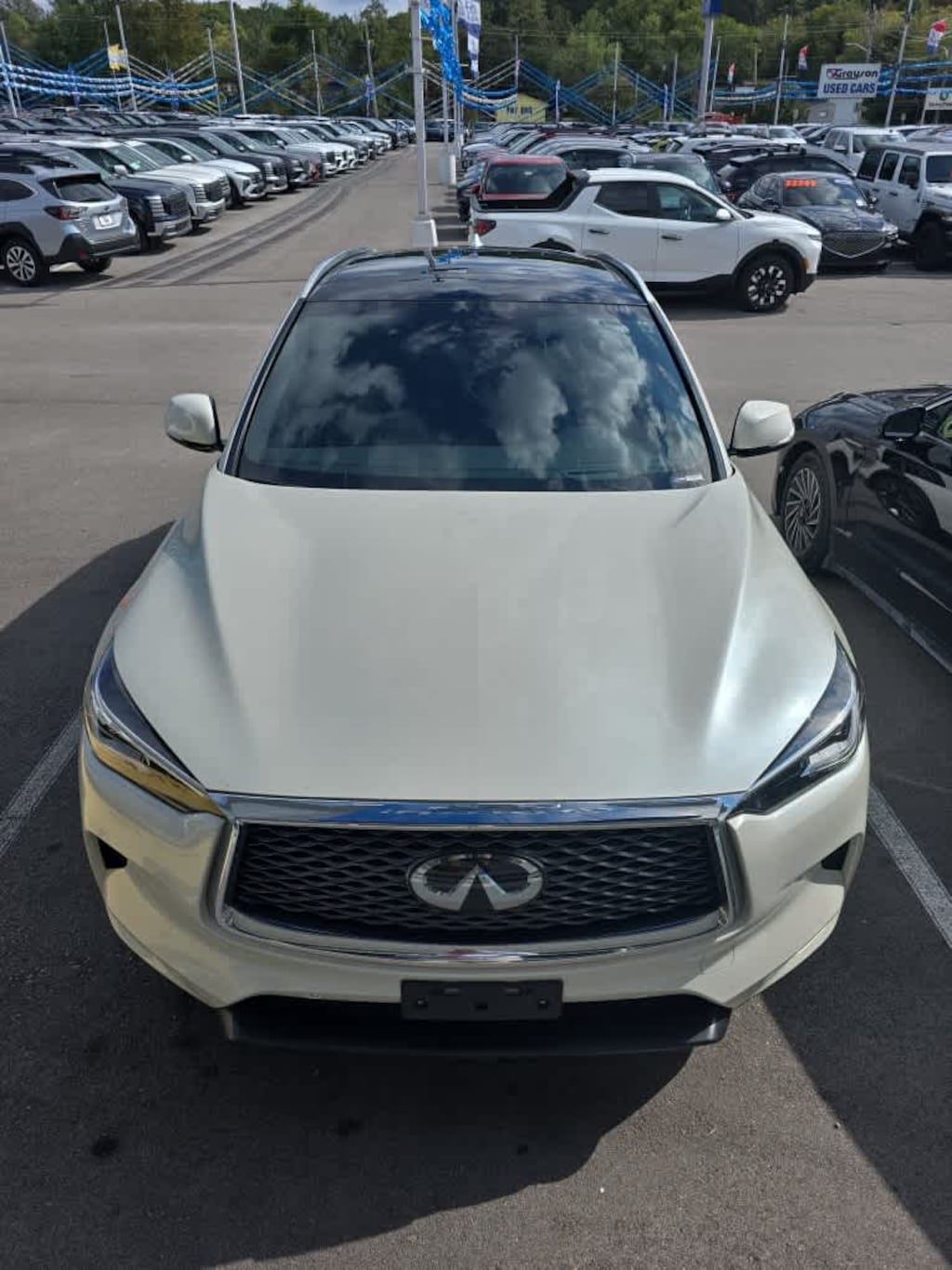 Leather Seats, Navigation, Sunroof, Panoramic Roof, All Wheel Drive, Power Liftgate, Rear Air, Heated Driver Seat, Cooled Driver Seat, Back-Up Camera, Turbocharged, Premium Sound System, Satellite Radio, iPod/MP3 Input, Onboard Communications System Rear Spoiler, MP3 Player, Remote Trunk Release, Privacy Glass, Keyless Entry. INFINITI AUTOGRAPH with Majestic White exterior and Graphite interior features a 4 Cylinder Engine with 268 HP at 5600 RPM*.